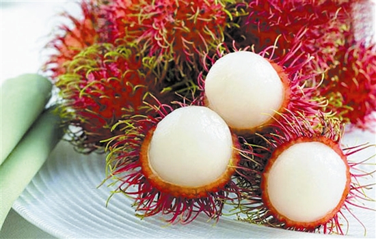 紅毛丹,味道和荔枝相近,個頭卻大不少,盡管產(chǎn)自熱帶,但已經(jīng)是水果攤常見的水果。很多人喜歡毛荔枝酸甜的味道,尤其在干燥的冬天,吃幾顆多汁的毛荔枝很是解渴開胃。但要提醒大家,毛荔枝屬溫?zé)嵝运喑砸咨匣?。口舌生瘡、口干舌燥、扁桃腺發(fā)炎、臉長青春痘、口臭、便秘、痔瘡、咳嗽吐黃稠黏痰等熱性病者不宜多吃毛荔枝。而偏寒性體質(zhì)的人,比如怕冷,不能喝涼水和其他冷飲者及痛經(jīng)患者,則可適量選食毛荔枝。