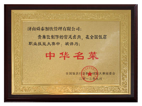 我公司的宮廷鹵肉被評(píng)為“中華名菜”