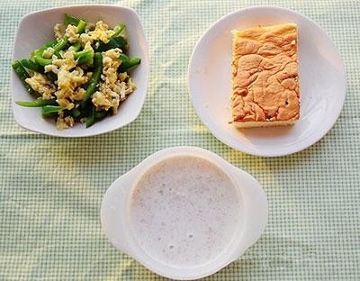 1、海綿蛋糕+青椒炒蛋+牛奶麥片