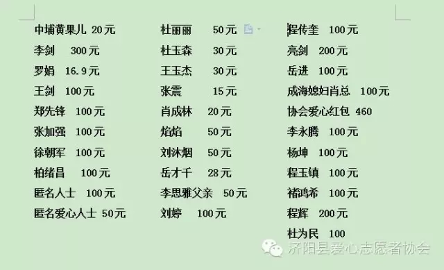 濟(jì)陽縣愛心志愿者協(xié)會(huì)愛心賬號(hào):